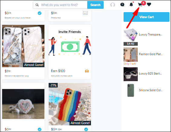 - La prochaine étape consiste à cliquer sur l’icône du panier qui apparaît dans le coin supérieur droit de l’écran.