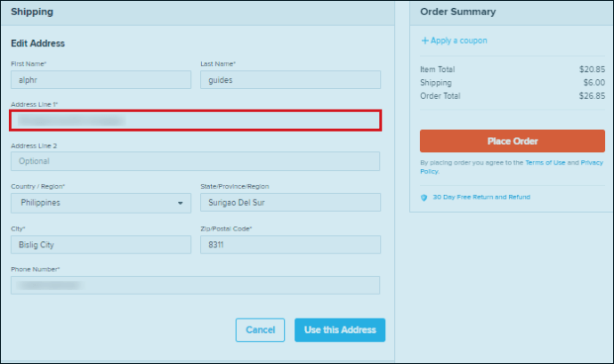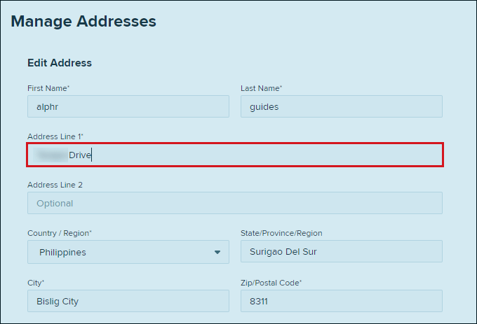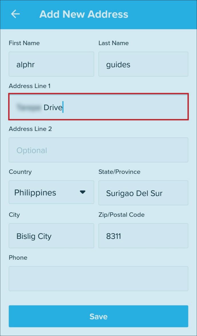 - Maintenant, ajoutez la nouvelle adresse là où il est indiqué «Adresses Ligne 1«.