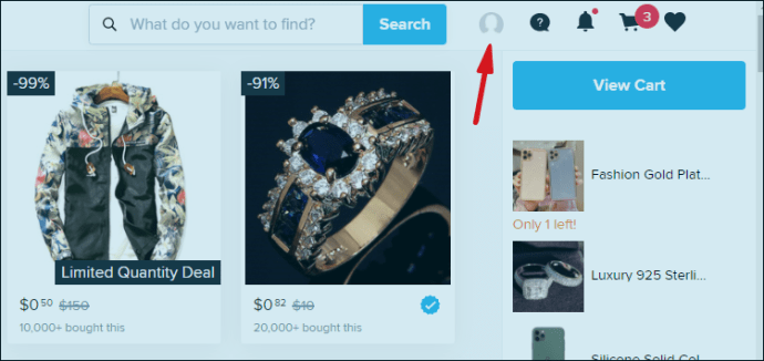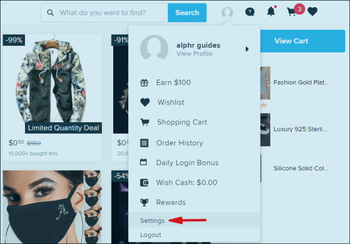 - Ouvrez Wish dans votre navigateur Web préféré.