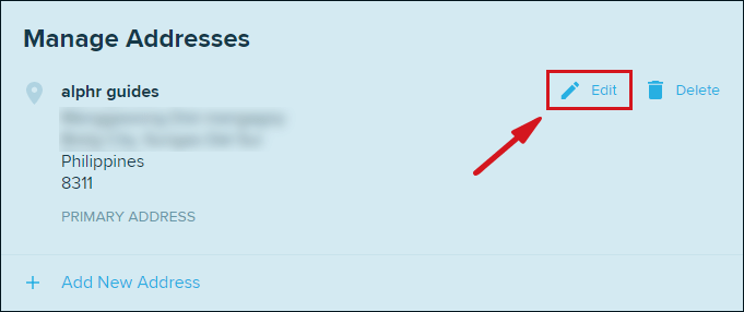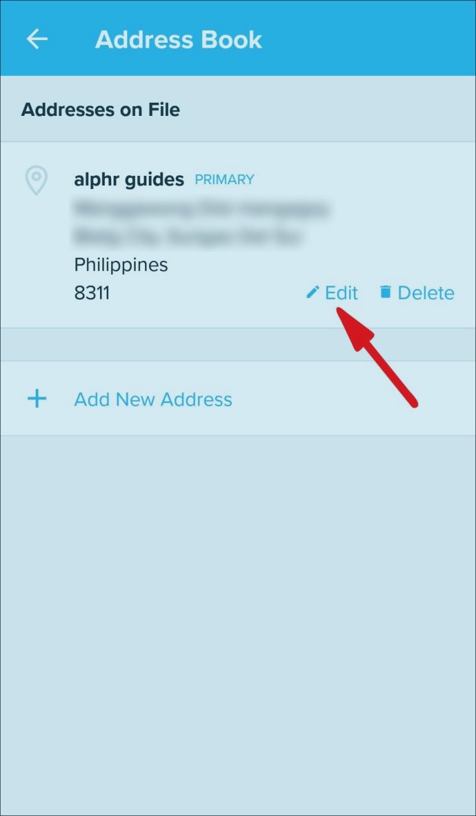 - La prochaine étape consiste à trouver l’adresse de livraison actuelle, puis à cliquer sur l’option «Modifier«.