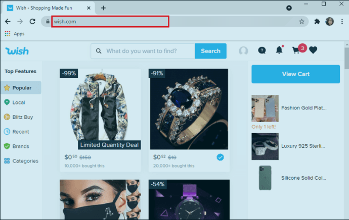 - Ouvrez le navigateur web de votre choix et allez sur Wish.