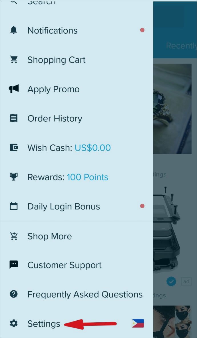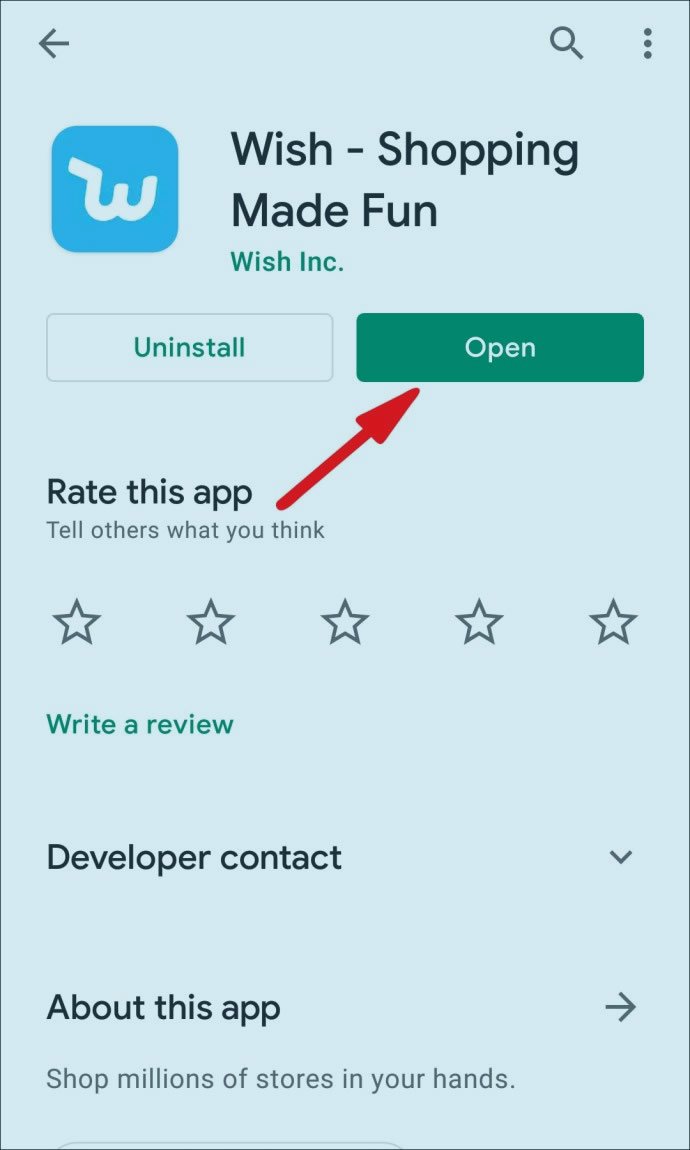 - Commencez par ouvrir l’application Wish sur votre téléphone portable.